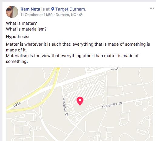 Ram has been using his Facebook posts like this for some time… what if more philosophers did the same thing? Let us know in the comments below!