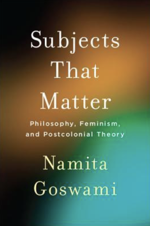This edition of the Recently Published Book Spotlight is about Dr. Namita Goswami. She is an Associate Professor of Philosophy at Indiana State University. Her work combines continental philosophy and postcolonial, critical race, and feminist theory. She is the author of Subjects That Matter: Philosophy, Feminism, and Postcolonial Theory (SUNY 2019). She is also co-editor (with Maeve O’Donovan and Lisa Yount) of Why Race and Gender Still Matter: An Intersectional Approach (Pickering & Chatto, 2014). She is currently working on a book on Gayatri Spivak.